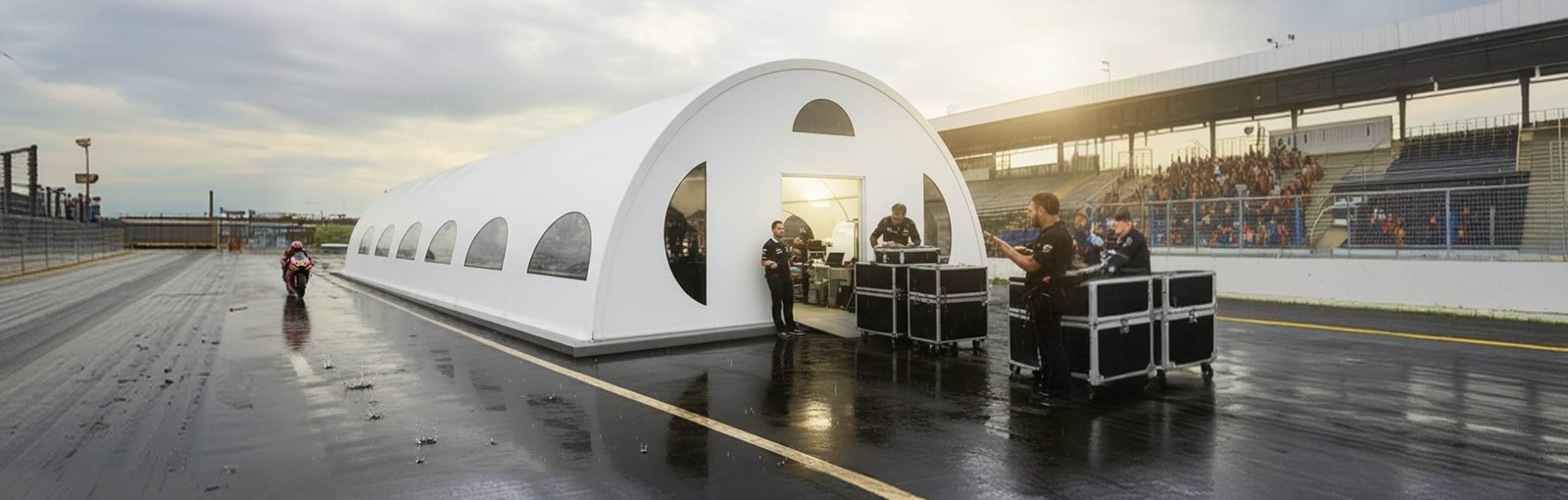 Sim! Nossas tendas são projetadas para suportar ventos de até 100km/h e cargas de chuva de 60kg/m². Possuem sistema de ancoragem reforçada e drenagem inteligente. Atendemos normas técnicas rigorosas de segurança estrutural.